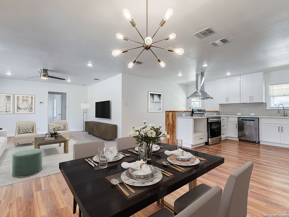 This beautiful 3-bedroom, 2-bath home has been recently remodeled with updates to the roof, appliances, flooring, bathrooms, and fresh interior/exterior paint. The kitchen features solid surface countertops and modern cabinets.