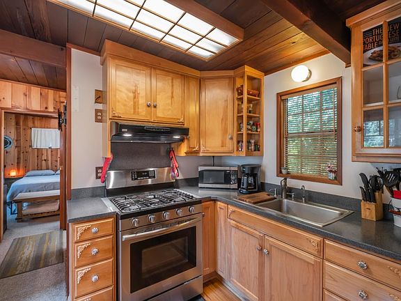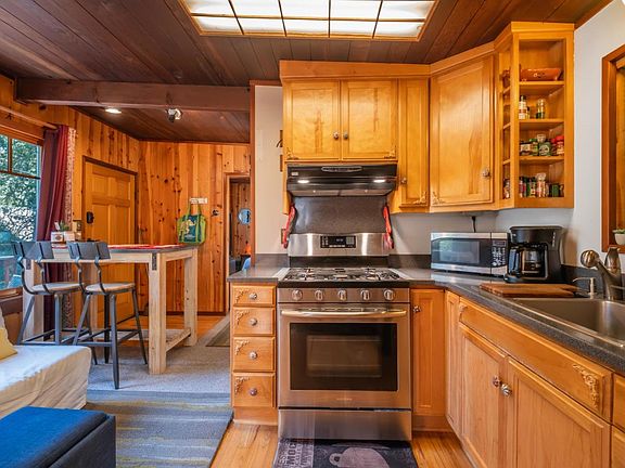 Just a stones throw from downtown Ben Lomond and all that it offers, including La Placa Bakery, Ben Lomond Market, and locals' favorite Highlands Park, you will find the most charming mountain cabin. This 1 bed/1 bath home features a spacious deck perfect for entertaining or relaxing after a long day of work with a cool beverage while listening to the babbles of the nearby San Lorenzo River. Skylights and large picture windows allow for abundant natural light to stream through and offer views of the majestic redwoods. Another perk of the house is having natural gas utilities. Outside, you will find a bonus structure that could be converted to the perfect artist studio or yoga room. The yard gets an ideal balance of sun and shade for those with a green thumb and who want to cultivate their own fruits and veggies or flower gardens. A wonderful sense of community is found in this small neighborhood with friendly neighbors and a semi-private neighborhood swimming hole nearby. Upgrades include newer kitchen appliances, NEST thermostat, window air conditioner for the warmer months, and a transfer switch meter cable installed by PG&E.