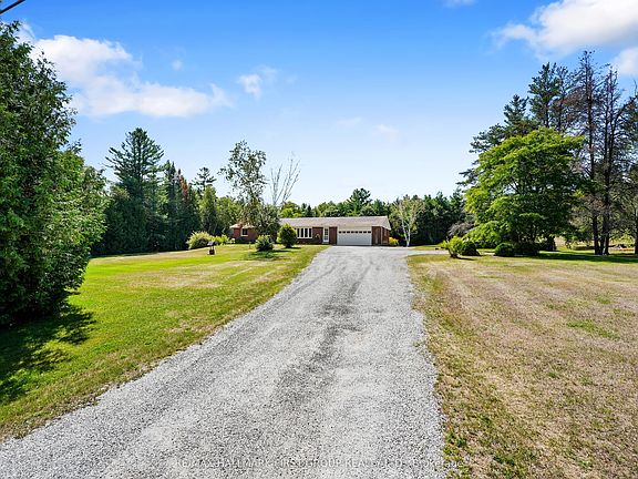 Situated on 4.63 acres on a quiet, dead-end street, this character-filled bungalow offers an attached garage, a detached workshop, and a walkout basement with potential for in-law accommodations. The bright front living room showcases natural wood trim and a wall of bow windows that flood the space with sunlight. An open kitchen and dining area provide the perfect setting for gatherings, with a walkout to the back deck that seamlessly extends the living space outdoors. The kitchen features a peninsula prep counter, warm wood cabinetry, and a large window framing views of the backyard. The primary suite boasts a generous window that highlights the incredible vistas, along with an en-suite and walk-in closet. Two additional bedrooms, a full bathroom, and a guest bath complete the main level. The lower level offers endless versatility with a sprawling recreation room, stone-clad fireplace, walkout, and a kitchenette that could easily be expanded into a full kitchen and dining area, and a large bedroom. Outside, acres of open space surround a spacious elevated deck, bordered by mature perennial shrubs. A 1,359 sq. ft. workshop provides an exceptional space for car enthusiasts, hobbyists, or those seeking a home-based business opportunity. Just off Hwy 45 and located close to Rice Lake, this property offers privacy, natural beauty, and the relaxed pace of country living. The ideal retreat for those eager to make a home their own.