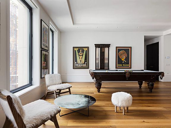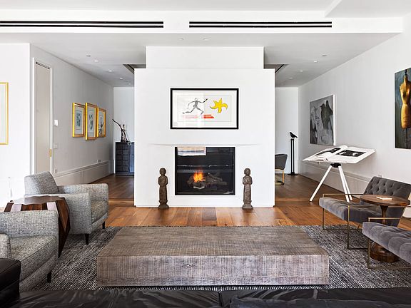 Enter your full- floor home via keyed elevator access that delivers you into the private entry gallery of this exquisite 4,271-square-foot residence. A coat closet and powder room make a gracious greeting while expansive living spaces introduce sky-high ceilings, wide-plank fumed white oak floors and 18 oversized windows on the western and eastern exposures. Gather alongside Wooster Street views in the massive living room, or entertain under designer lighting in the stunning dining room. In between, a linear gas fireplace acts as a striking focal point and subtle room divider. Chefs will delight in the dramatic open kitchen where rich slate gray cabinetry, bold Danby marble waterfall island and a walk-in pantry are joined by state-of-the-art appliances, including a vented six-burner gas range. A glass door opens to your sun-splashed east-facing 184-square-foot balcony, the perfect spot for morning coffee or after-dinner drinks.