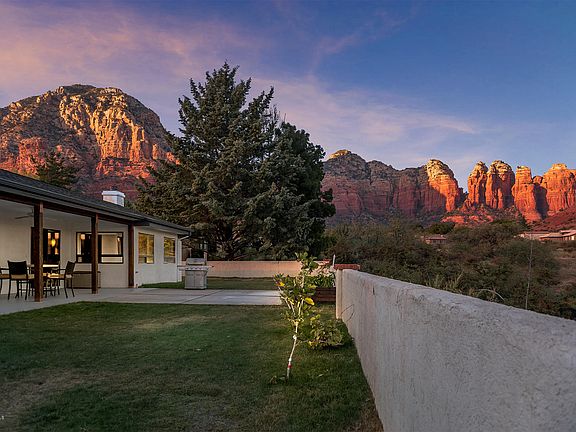 Gorgeous turnkey home with breathtaking panoramic views set beneath Thunder Mountain in ideal central location. 3 beds, 2 baths + office with modern, split bedroom floor plan. Step out to a perimeter-walled backyard paradise to take in sweeping views of Thunder Mountain, Coffee Pot, Sugarloaf, Airport Mesa, all the way down to Courthouse Butte. Kitchen features Carrara marble inspired quartz countertops, granite composite sink, all new LG appliances, large pantry and breakfast nook that perfectly frames the stunning views. Luxurious, custom designed master bath features stand-up shower with oversized shower head, body jets and stone accents, dual vanity with LED illuminated mirrors, brushed gold water fixtures, custom cabinets, countertops and walk-in closet. NO HOA, SHORT TERM RENTALS OK