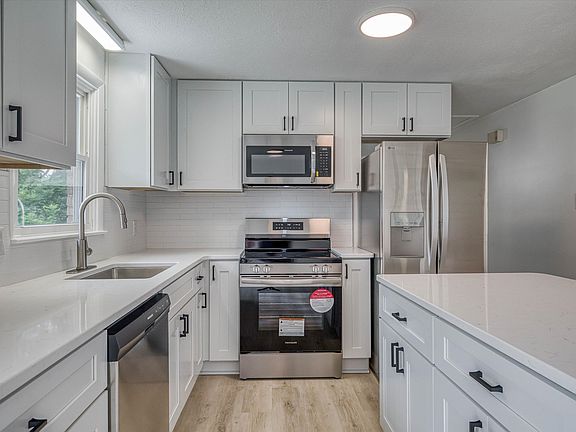 Welcome to this beautifully updated 3-bedroom, 1-bath ranch home with a full basement and 1,450 sq ft of thoughtfully designed living space. Located in the sought-after NE Hickory area, this all-brick beauty combines classic charm with modern upgrades. Inside, you'll find new LVP flooring paired with restored natural hardwoods, and freshly painted interiors that fill each room with warmth and light. The stunning new kitchen is a highlight, featuring crisp white cabinets, stainless steel appliances, a spacious island, sleek quartz countertops, and a chic white subway tile backsplash. The updated bathroom is equally impressive, with a new vanity and a tiled tub/shower combo with a built-in niche. Enjoy the outdoors in the flat, low maintenance yard.