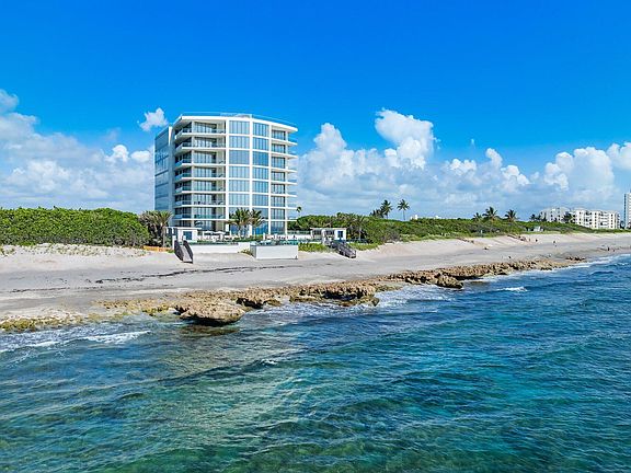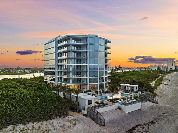 Exceptional opportunity to own this new construction residence in Jupiter Islands one-of-a-kind SeaGlass Condominium. Construction completed in 2022, being the first new condominium development in over 20+ years on Jupiter Island. Only 21 total residences offering uncompromised luxury, breathtaking views while also offering unprecedented privacy. This property is located between the ocean, Intracoastal, and lush protected landscapes. Residence 203 is one of one in the building, offering some of the largest outdoor living areas with direct pool and ocean access, 10+ foot ceiling heights in primary living areas and bedrooms, and this residence is being offered with a private climate controlled pool side Cabana which is only 1 of 5 on the property. 203 has a large open floorplan with floor to ceiling glass, Limestone "Crema Saida" flooring, and stunning direct ocean views. The floorplan includes 3 Bedrooms, 4.5 baths, with a Den, all bedrooms include ensuite baths, and walk-in wardrobes. Master bedroom has direct ocean views with private terrace access, double walk-in wardrobes, individual master bathrooms with a steam shower and full height frameless glass enclosure, imported marble throughout master bath, Italian wall-mounted vanities with designer mirrors and lighting.