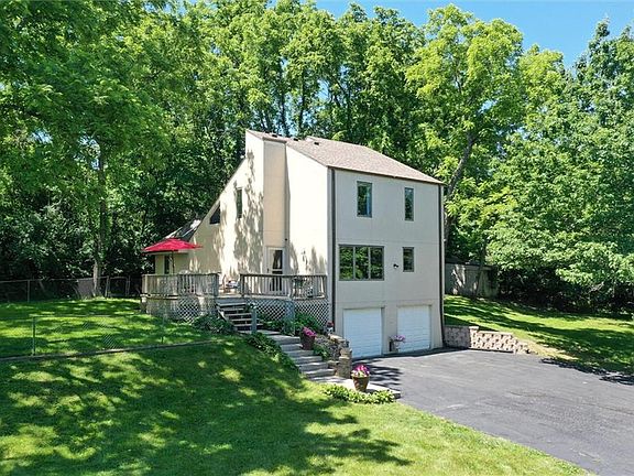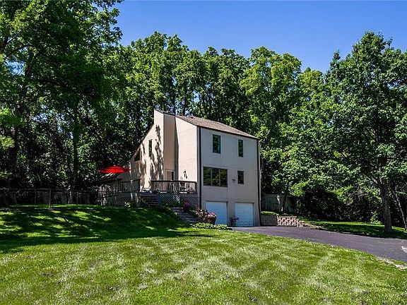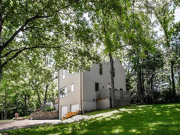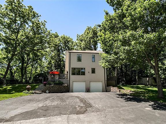 Situated in a private setting just minutes from key locations in Kansas City. Visit this serene sanctuary surrounding this lovely beautifully maintained home that features open-concept living, kitchen, and dining area filled with natural light. Potential for 2 bedrooms on the main level. The large kitchen and dining room offer beautiful views of the open area and treed surroundings. Chefs will appreciate the gas kitchen island. The living areas are spacious with vaulted ceilings and skylights, complemented by a family room adjacent to the living room that could serve as a 4th non-conforming bedroom with a private entrance. The incredible main bedroom extends the length of the house and includes an en suite bathroom with double sinks, a shower, two large closets, and a jetted tub Convenient main floor laundry is located just off the kitchen. The home also offers abundant storage with a large basement and garage. Set on nearly 5 private acres, this amazing property includes two large decks and offers complete privacy with no other homes in sight.