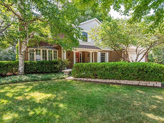 Be prepared to fall in love...you will know this home is special the minute you walk up to the front door. Located in Sunset Meadows, this ALL brick home is within walking & biking distance to downtown Geneva. Step into the large 2-story foyer and notice the charming open staircase There is a beautiful formal dining room, the perfect place for entertaining over the holidays. The formal living room has great space, including a large bow window, built-in bookcases and a charming window seat overlooking the backyard. Next, the back family room that features a wood-burning masonry fireplace, built-in bookcases with a dry bar with soft accent lighting and a sliding glass door out to the backyard. The kitchen is beautifully updated with quartz countertops, a custom marble backsplash, white cabinets, corner cabinets with glass fronts and a wonderful butlers pantry area. The eating area has a 2nd sliding glass door out to the backyard. Next, the laundry room/mud room which features a utility sink and built-in and open cabinets. Upstairs you will find 4 generous bedrooms with custom organizers, including an updated hall bath with custom tile and a granite top vanity. The primary bedroom overlooks the back and has a newer walk-in shower and toilet area, dressing area and a large walk-in closet. The basement is finished with an exercise room and a rec room with built-in cabinets, and loads of storage including a HUGE concrete crawl space that has ample lighting and carpet. The basement also has a back-up sump pump with an alarm. Now the outside, which is AMAZING! A 1/2 acre lot with a half basketball court, perennials, towering mature trees throughout and a bubbling pond with a waterfall on the 2-level paver patio. There is also a built-in gas grill. The entire yard is fenced in and offers complete privacy....it's magical! A place of serenity! In addition, the home has been meticulously maintained. The roof and gutters (with gutter guards) were replaced in 2023, with a transferrable warranty, the hot water heater in 2020. The garage has a beautiful professional epoxied floor. Walk or bike to Geneva Park District pool, commuter train into Chicago, downtown Geneva and area schools and playgrounds. It's a 10!