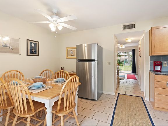 This bright and welcoming townhouse is in a FANTASTIC location! It's less than a mile to the beach, and all that pier village has to offer is less than five minutes away. On top of that, the unit has been beautifully redone! The owners remodeled the kitchen in 2020 with custom cabinets, new countertops, new stainless steel appliances, new ceramic tile flooring, and more! They even removed a partial wall and relocated the refrigerator to make more counter space. Additionally, they remodeled the half bath with shiplap paneling, new pedestal sink, new lighting, and a built in cabinet niche. But that's not all! The upstairs bathroom has a new tiled shower, tiled floor, vanity, and more! Also, the steps and second story have new carpeting. (Ask your agent for the list of improvements from the MLS.). In addition to all that, the unit is being sold furnished (only the linens-- bedsheet sets, bath and pool towels, dish towels, etc-- will be returned to the property management company before closing)! All you need is your toothbrush and linens! Outside of the unit, the community offers a large, refreshing swimming pool (which you can see from your back patio) and a shaded area with a pingpong table. This condo complex has NO RENTAL RESTRICTIONS! If you've been searching for the perfect beach getaway, THIS IS IT! Come see this home in person before it's gone!
