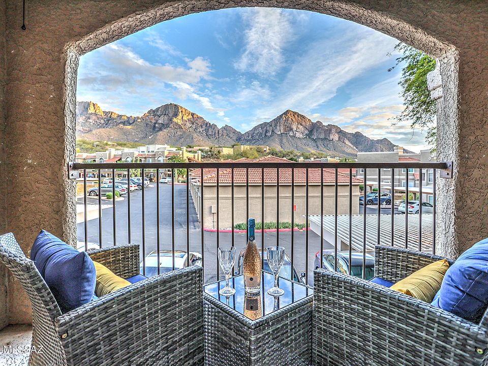 This immaculate 2 bed, 1 bath condo, with a garage, offers a peaceful and private setting with open layout, resort-style community amenities and the stunning mountain views from your balcony and bedroom. The community features sparkling pool, spa, fitness center, clubhouse and is surrounded by boulder and desert scenery. Located minutes from shopping, dining, golf, hiking trails, Catalina State Park, and Oro Valley Market Place. This move-in ready home offers the perfect blend of comfort, convenience, and natural beauty. Ideal for full time residency, winter getaway or investment property. Listing Soon