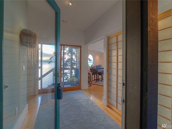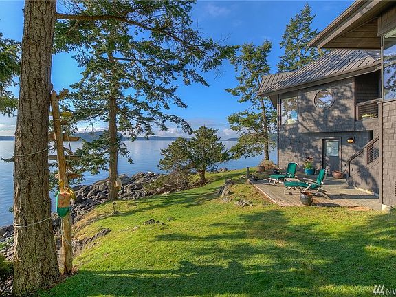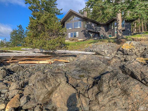 Perched just above a south facing cove in Foster Point with ferry, mountain & marine views, this Lundgren designed waterfront gem is bright & open with high ceilings & stunning views. The main floor great room is anchored by a central fireplace & cozy seating area adjoining a spacious gourmet kitchen.The living room is flanked by the sunny main floor master & a large office. Lower level has view bedroom with 3/4 bath, shop and wine cellar plus abundant storage.140 acres of common area w/ trails.