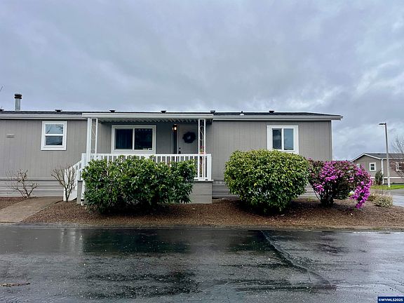 Remodeled 1991 Skyline BEAUTY in a well managed 55+ park. Newly installed LVP flooring thru-out, furnace, water heater, all new double-paned vinyl windows, siding, stylish new bath vanities, stainless steel range, fridge & dishwasher! Freshly painted inside and out. Vaulted ceiling in lovely Living Room. Primary on opposite end from guest bedrooms. Open kitchen with tons of storage. Mudroom/laundry entrance on side from carport. Tool shed. Low maintenance landscaping. Covered rebuilt deck out front.