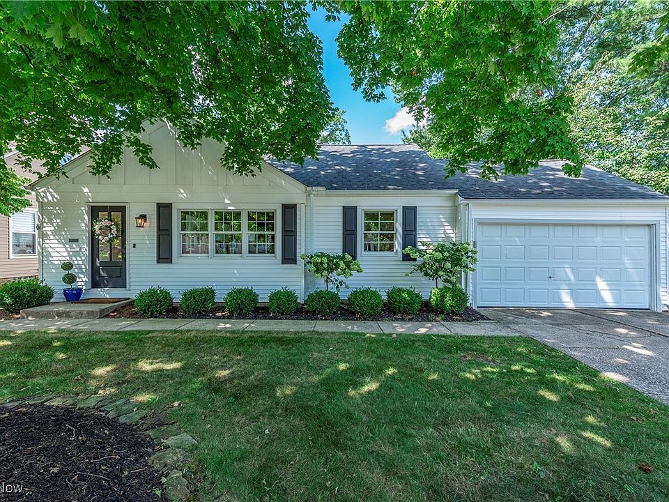 Welcome to this beautifully updated ranch in the heart of Rocky River’s highly sought-after library area. Offering 1,075 sq. ft. of stylish living space, this move-in-ready gem sits on a sizeable lot and boasts a host of updates that make it truly exceptional. The home features two generous bedrooms with an additional bonus room currently being utilized as a walk-in closet/laundry room, a remodeled full bathroom with a thoughtful expansion, as well as a newly added half bath conveniently located off the kitchen (2022). Nearly every aspect of this property has been refreshed, including windows (2022), siding (2022), gutters (2022), doors (2022), all appliances (2022), a tankless hot water tank (2023) and a furnace(2022). The interior has been upgraded with new flooring (2022) and a fresh coat of paint (2023), while the garage now includes durable interior industrial siding (2024). An updated electrical system, including a new electrical box, and plumbing ensure peace of mind (2022). Enjoy cozy evenings by the newly installed electrical fireplace (2022) and savor outdoor living on the fantastic back patio, perfect for entertaining. The curb appeal is undeniable, with a clean, neutral color palette both inviting & refreshing. Located within walking distance to everything Rocky River has to offer, this home also includes a convenient 2-car attached garage. Don’t miss the chance to move right into this incredible home that perfectly blends style, comfort and convenience in a prime location.