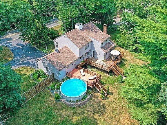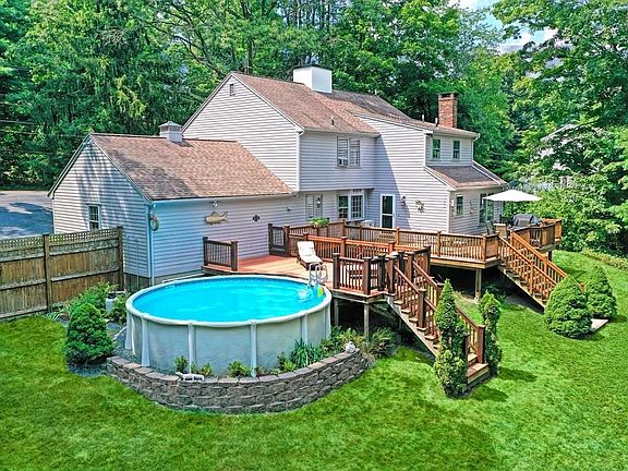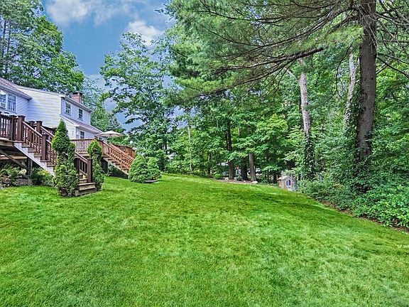This bright, sunny and deceptively spacious home abuts acres of open space and protected land, offering seasonal peeks of Lake Winthrop. Handsomely sited on its acre plus lot, you'll appreciate the private backyard setting and pool, while also abutting the popular Rolling Meadow neighborhood and close to downtown, Rail Trail and lovely Wenakeening Woods. Meticulously maintained and updated, the open floor plan offers an eat-in kitchen with granite, new backsplash, breakfast bar, bay window & cove lighting; inviting fireplaced family and living rooms with coffered ceiling, lots of windows & beadboard; spacious dining room. Main level is completed by the mudroom/laundry room and elegant powder room. Upstairs you'll find 4 spacious bedrooms, including the front-to-back master with 2 closets (1 walk-in) and lovely master bath with marble flooring & beadboard walls. Basement awaits your finishing, with 10-12 ft ceilings. New 4 BR septic in process. Pride of ownership shines through!