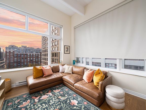 You’ll truly appreciate the functionality of this layout with its soaring 14' lofted ceilings and exposed concrete beams, galley style kitchen leading to the spacious dining room and living room with 10' picture windows allowing an abundance of natural light, overlooking the lush green gardens of the courtyard and great lawn of the Tea. The custom kitchen has under cabinet lighting, stainless steel appliances, quartz countertops and backsplash and can easily be opened up if you prefer.