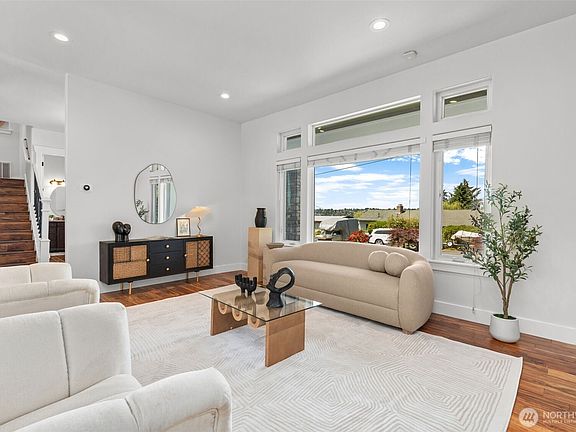 Welcome to your Kennydale Gem—a spacious retreat where timeless design meets everyday comfort. Upon entering, you're greeted by soaring ceilings, rich flooring, and a sun-filled living room with custom alcoves and a modern fireplace. The elegant dining space opens to a designer kitchen with endless counter space and effortless flow. Upstairs, enjoy the view of Mt. Rainier or Lake Washington from the covered deck, or cozy up in the spacious loft—perfect for movie nights or a home office. The oversized primary suite is a true sanctuary with peek-a-boo water views, plus a spa-like ensuite. With unmatched curb appeal, a fully fenced entertainers backyard, and thoughtful upgrades throughout, this home is the full package. Pre-inspected!