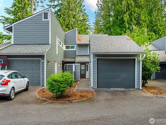 Charming Two-story Condo Nestled in the Woods at Barnes Lake Park in Tumwater. This fantastic home offers 2 large bedrooms and 1.5 bathrooms in 1,428 sq ft, and features a kitchen with tile counters and backsplash, a skylight and large window for plenty of natural light, a pass-through to the spacious, open living and dining areas, and a large slider opens to the patio. Upstairs, you will find two large bedrooms, a full bath and your in-unit laundry. Parking is a breeze with the attached one-car garage plus an additional reserved parking spot. Enjoy the community offerings such as a sports court, park, trails & access to Barnes Lake. Conveniently situated with easy access to shopping, restaurants, freeways, and JBLM. See this one today!