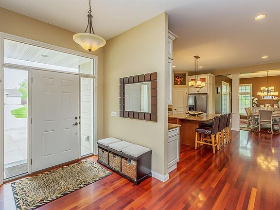 This gorgeous custom built ranch in Robins features an open floor plan with all of the upgrades as well as a beautiful back yard with patio, fire pit, and mature trees. You will love the spacious kitchen with large granite island, gas cooktop, and Brazilian cherry floors. Formal dining room with columns that leads to the screened in porch with a view of the yard below. Custom built ins with gas fireplace in the family room, finished lower level with office, and guest suite, plus plenty of space for storage. Wonderful neighborhood with a nearby park, sand volleyball court, basketball court and playground.
