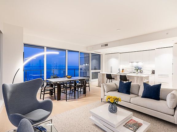 Ocean-facing residenceFloor-to-ceiling windowsLarge islandElegant marble finishesDouble vanityWalk-in shower