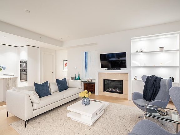 Welcome to Foster Martin in the heart of White Rock! This 2 bed, 2.5 bath ocean-facing residence offers sweeping views of Semiahmoo Bay from every principal room. Thoughtfully designed with floor-to-ceiling windows, A/C, and wide-plank flooring throughout. The chef's kitchen features a full Miele appliance package with steam oven, large island, and elegant marble finishes. Enjoy seamless indoor-outdoor living with a spacious balcony perfect for relaxing or entertaining. The primary bedroom includes a spa-like ensuite with double vanity and walk-in shower. World-class amenities include a concierge, indoor/outdoor pool, hot tub, sauna, gym, and residents' lounge. Steps to the beach, promenade, restaurants, and shops. Includes 2 parking stalls (1 EV) and 1 locker. Concrete construction.