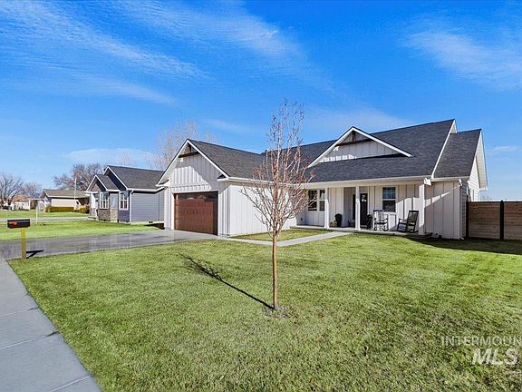 Classic farmhouse style mix with fresh, contemporary vibes in this 3 br/2ba single story, west-facing home on a beautifully fenced lot. Striking interior details include light-filled rooms, clean organic color palette, coordinated finishes and a spacious open floorplan. Artfully curated light fixtures and stacked stone, gas fireplace create a cozy, homey elegance. No shortage of curb appeal with an oversized front porch, natural wood gable accents and upgraded wood grain garage door. Outdoor pergola, washer/dryer and fridge are included. Don’t miss your opportunity to tour this lovely home. Schedule your showing today!