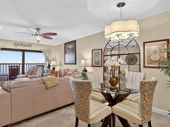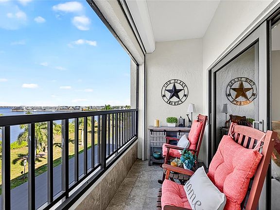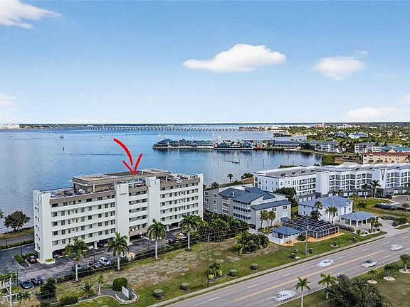 Open the door and say “WOW!” Enjoy breathtaking views of Charlotte Harbor from this beautifully updated condo on the 4th floor. Furnished TURN-KEY! (just bring your toothbrush) Resort-style amenities include a rooftop pool and clubhouse, a relaxing sauna, and easy access to the vibrant lifestyle of Punta Gorda. Convenience is key with your assigned covered parking spot (4E) with a large storage unit that's wide and deep enough for two bicycles. In this unit, all windows and the sliding glass door have been replaced with IMPACT resistant glass, complemented by a remote-controlled hurricane shutter for added security. No closed-off kitchen here--a major remodel completely reconfigured the kitchen so that the open floorplan flows easily and allows more enjoyment of the gorgeous water view. High end custom maple cabinetry and granite countertops were installed. The remodel included TILE flooring throughout (no carpet!); modern lighting fixtures; updated bathrooms with tile showers; new sinks and toilets; and a granite vanity in the master bathroom. Recent upgrades within the past five years include a new HVAC system, air handler, and thermostat; new water heater; and a new dishwasher. A NEW ROOF is currently being installed, and the security system at the lobby is being upgraded for your peace of mind. Each floor has its own laundry room and trash chute, plus this unit has hookups for a washer and dryer in the hall closet. Imagine the convenience of being the closest to the elevator and sitting area on the balcony, yet tucked away for privacy. Fisherman's Village Pier, Sunseeker Resort, lively downtown, and waterfront dining are close enough to enjoy everyday. Don't pass up the opportunity to own a move-in-ready home with stunning views and top-notch amenities in one of Florida’s most desirable waterfront communities.