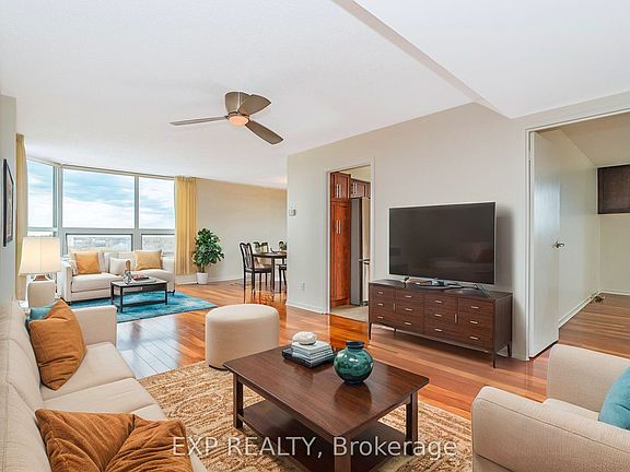 A rare opportunity to own one of the largest residences in the coveted Riviera Towers - an exclusive gated community offering 24-hour security and resort-style amenities just minutes from downtown Ottawa.This expansive 3-bedroom, 2-bath suite offers a refined living space, blending comfort with sophistication. The sun-filled open layout showcases generous living and dining areas, perfect for hosting or relaxing, while the private balcony invites you to unwind amid lush surroundings. The spacious kitchen and oversized bedrooms, including a serene primary suite, offer exceptional comfort and flexibility for both family living and entertaining.Enjoy an unparalleled lifestyle with access to indoor and outdoor pools, tennis courts, multiple gyms, sauna, hot tub, library, workshop, and beautifully maintained grounds. Two heated underground parking spaces and in-suite laundry add everyday convenience.Steps to the LRT at Hurdman Station and moments from the Trainyards shopping district and scenic river pathways. Condo fees include water, sewer, internet, cable, and A/C.Experience grand-scale living with world-class amenities at the iconic Riviera Towers - where luxury meets convenience in the heart of the city.