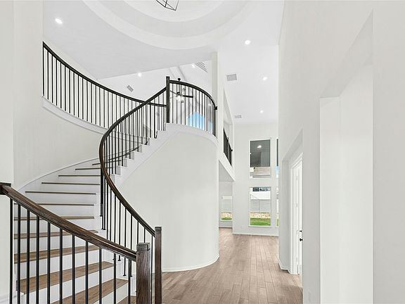 Westin Homes NEW Construction (The Asher X - B) READY NOW! In highly sought after Wolf Ranch. 3 CAR GARAGE. Gorgeous 2-Story Rotunda Entry with Wrought Iron Circular Staircase. Gourmet Open Island Kitchen with Quartz Countertops, 42" Tall Kitchen Cabinets with Uppers & Built-In Stainless Steel Appliances. Family Room with High Ceilings & Wall of Windows. Large Covered Patio. Private Primary Suite Down with Luxurious Bath Featuring Double Vanity Sinks with Quartz Countertops, Large Walk-in Shower & Free-Standing Tub. Guest Suite with private bath on First Floor. Study with Double Doors. Upstairs features Media Room, Game Room & 3 Beds / 2 Full Baths. Smart Home Package. Tray Ceilings, Architectural Details and more!