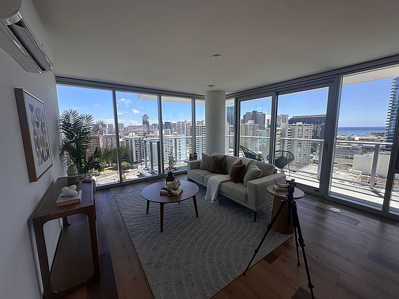 New 1 bedroom corner unit on the 19th floor with an extra large wrap around lanai that faces Ala Moana beach and East Honolulu. Many on-property amenities such as workout room, BBQ area, and future businesses on the ground floor. Conveniently located to restaurants,Sam's Club ,Walmart, Starbucks, and Ala Moana shopping center.