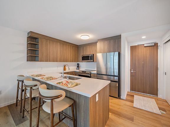 Upgraded ceiling fansModern fully equipped kitchenFloor-to-ceiling windowsCustom remote operated blindsQuartz countertopsUpscale appliancesCozy bedroom sanctuary