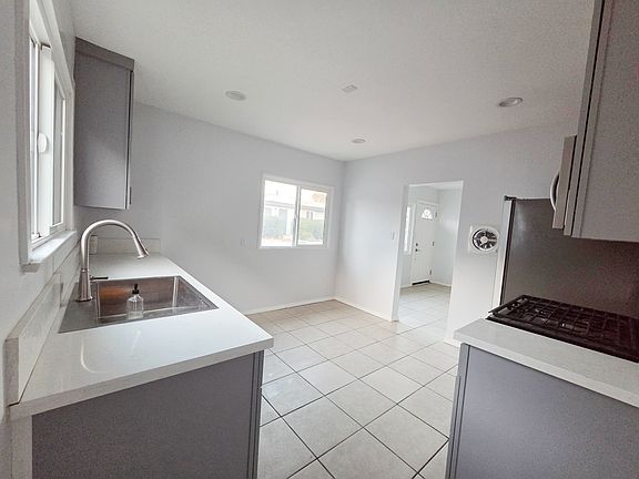 Step inside to discover a sun-drenched oasis featuring an open floor plan with tile flooring throughout and recessed lighting. The new kitchen is a highlight, boasting stunning quartz countertops, brand-new soft-close cabinets, a gas range, a new dishwasher, and a premium refrigerator with ice and water. You'll also love the convenient pull-down faucet and built-in microwave.