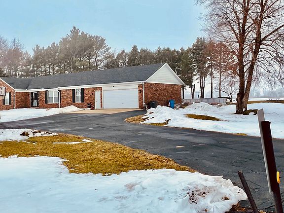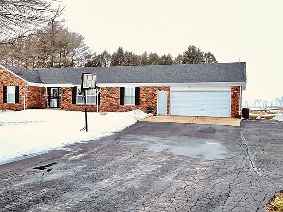 Spacious all brick ranch home on 1.39 acres on outskirts of Kings, adjacent to the grade school. Features 3-4 bedrooms, 2.5 baths, a large open kitchen with a wood-burning fireplace, and all kitchen appliances included. Main floor office can serve as an additional bedroom, mudroom or playroom.. The basement has a large family room, 4th bedroom, pool table area and half bath, which is ready for shower install. (Pool table Stays) Outdoor amenities include two rows of 78 pine trees, a large fire pit, and an above-ground pool. Roof replaced in 2014, hot water heater in 2022, and furnace has a new heat exchanger, gas valve and igniter in December 2022. Barnwood flooring on the main floor and custom Barnwood wall treatment in the master bath are from the grandfather's childhood farm. New front sidewalk professionally installed and stoop raised, yard graded by house and blacktop drive sealed in 2023. This home offers beautiful morning sunrise views from the front yard and sunset views from the back.