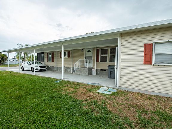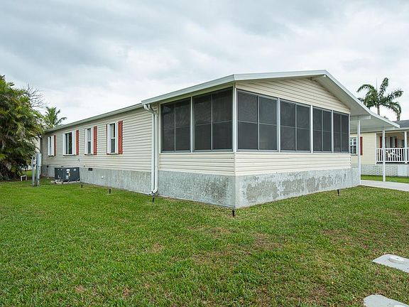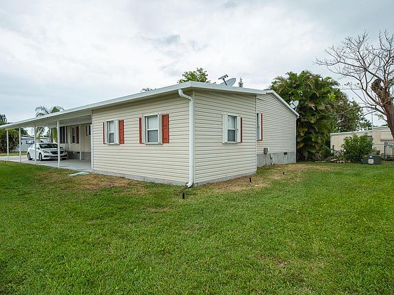 JUST LISTED! Great double wide manufactured home with huge side carport, big storage and front lanai. LAND IS INCLUDED. Built in 2003 this home features an open split floor plan with 3 bedrooms and 2 bathrooms. It has an open kitchen with white appliances, vaulted ceilings, a laundry closets, and lots of storage. It is fully equipped with accordion hurricane shutters.Located in West Boca Raton this small community of 173 homes has great rated schools and is very close to shops and restaurants. For more info call listing agent