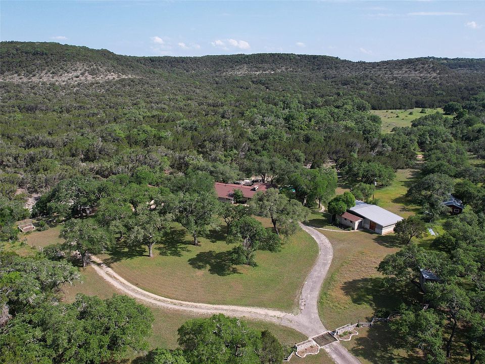 Step into the rich history of Spoke Hollow Ranch, where the warmth of the early '50s embraces you in the original ranch home. Nestled in the Wimberley Valley along Spoke Pile Creek, this hidden retreat offers breathtaking views of serene hills & a captivating landscape. Perfectly situated on a newly subdivided 4+ acre tract, the home was once the heart & soul of the ranch. Two adjacent relatively untouched 3-acre lots are also available for purchase. Located just outside city limits and ETJ, the property offers boundless potential for a variety of uses including short term rentals, family compound or personal sanctuary. The home has undergone thoughtful renovations to preserve its mid-century modern aesthetic, featuring interior rock walls & columns, original wood flooring, tilted jalousie windows & a wood-burning fireplace. The spacious kitchen flows into the dining room, a cozy bar & 2 living areas. Stunning views of the hills are savored from the remodeled primary suite and sitting area. On the far side of the home, 2 bedrooms share a connecting bathroom & a 3rd living area. Step outside to discover a sparkling inground pool, creekside patio, fenced garden area, chicken coop & a workshop/garage that could be repurposed as a guest cottage. After a replenishing rainfall, Spoke Pile Creek springs to life w/the soothing sound of cascading waterfalls. This is a rare opportunity to acquire an authentic ranch-style residence on exceptional hill country acreage.