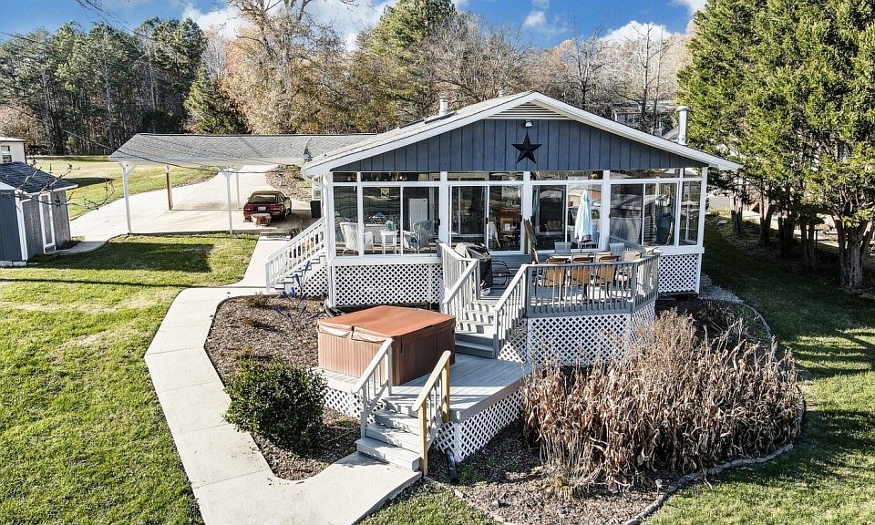 One level waterfront treasure designed to enjoy lake living and the outdoors. Hard to find gentle sloping lot located on a quiet cove with easy access to open water for boating and water sports. You?ll love the multi-level decks and covered dock that are perfect for outdoor entertaining or just to relax and take in the views. Easy living open floor plan boasts 2 bedrooms, 2 baths, vaulted great room with built-in cabinetry, wet bar, and wood burning stove. Entertain in your amazing kitchen with stainless steel appliances, granite counters, breakfast bar, and pantry. The fabulous sunroom even has a/c unit and a wood burning fireplace for 4 season use! Looking for peace, serenity and relaxation then this is the house for you. Low SC taxes, great Rock Hill location close to shopping, dining, and more.