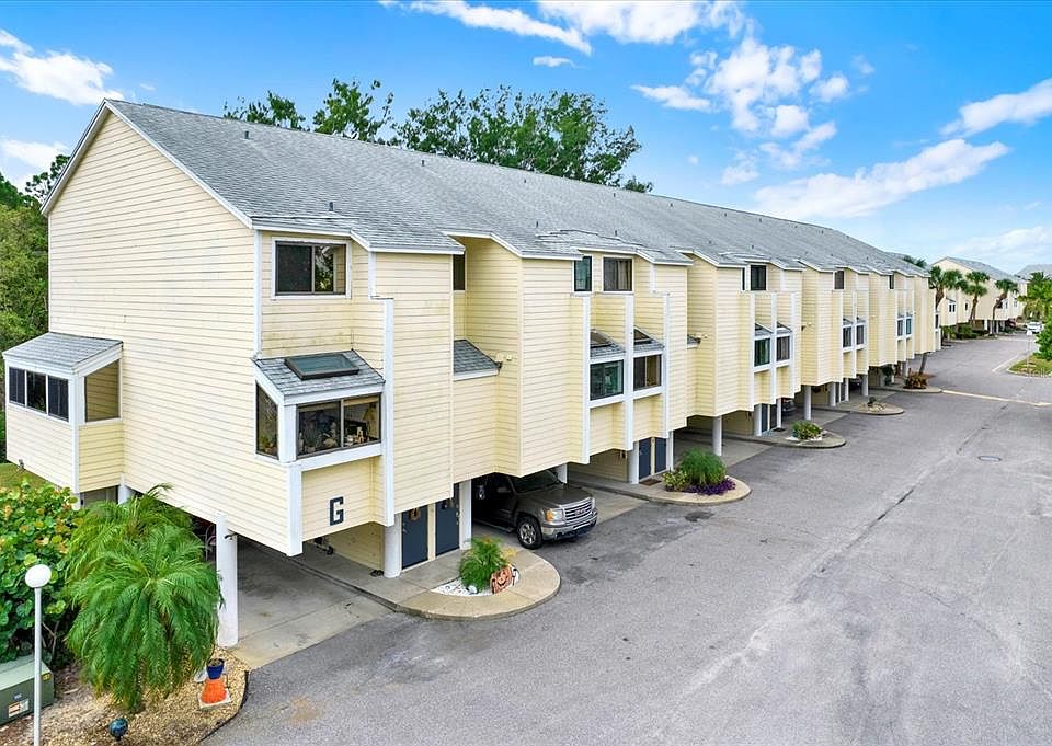 Step inside this beautiful and updated 2BR/2BA townhouse in the Gulf-front community of Island Club. As you enter, the bright kitchen welcomes you with granite countertops, updated appliances, and a skylight that fills the space with natural light. Just off the kitchen, a full bath with a walk-in shower is perfect for guests. Continue upstairs to discover two spacious bedrooms and a full bath. The primary bedroom features large windows with peaceful views of the saltwater and bird conservation preserve, creating a relaxing retreat. The second bedroom is equally inviting, ideal for family, guests, or a home office. This move-in ready home also offers hurricane-impact windows (2016), roof (2018 with solar vent fans), new A/C and ductwork (2019), hot water heater (2018), and a convenient laundry nook under the stairs. Covered tandem parking for two cars is directly under the unit. Island Club residents enjoy Gulf-front sunsets, a sparkling pool, tennis courts, and well-maintained grounds. HOA includes exterior maintenance, flood insurance, reserves, roof, water/sewer, Cable, Internet and more. Located near Sunset Beach, Fred Howard Park, the Sponge Docks, and local shops and dining.