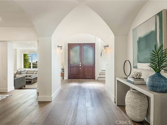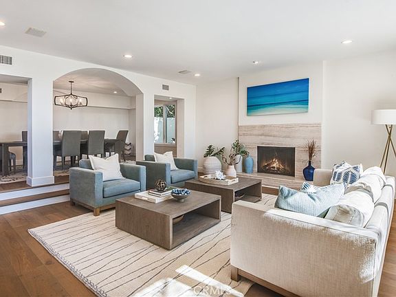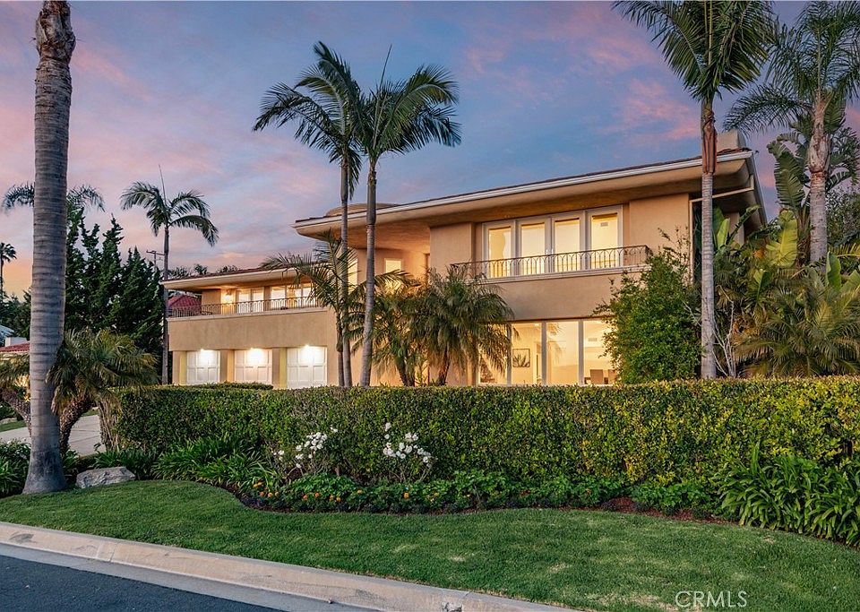 Step inside to discover an open-concept floor plan bathed in natural light, featuring a large formal living room with vaulted ceilings and a formal dining area perfect for entertaining. The huge great room effortlessly integrates the spacious family room and chef's kitchen, fully equipped with high-end appliances, a sizable center island, plus a casual family eating area, all overlooking the extensive rear yard. The primary suite serves as a serene oasis, complete with a spa-like en-suite bathroom and a private balcony overlooking the Pacific Ocean. This thoughtfully designed home features 5 bedrooms, 4 1/2 bathrooms, plus an office/6th bedroom on the ground level with a full bathroom that could be a guest suite.