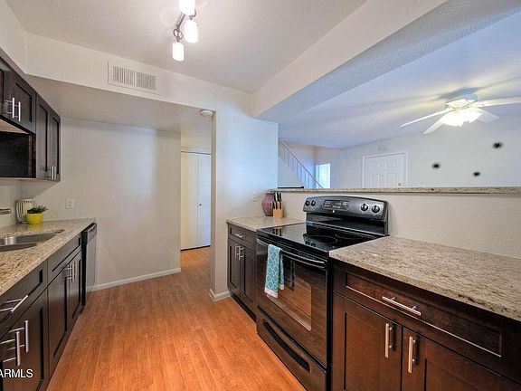 This updated cozy condo offers 3 bedrooms, 1.5 baths, 2 story, on the border of Tempe and Mesa. Unassuming location that puts you moments away from all freeways, ASU, CUBS stadium, 10 min away from South Scottsdale. 1 minute away from Mesa Riverview which has shopping, dining, movie theaters, gym & entertainment. Granite kitchen countertops, updated lighting fixtures, carpet upstairs, Pergo downstairs. ALL BEDROOMS UPSTAIRS along with full bathroom, 1/2 bath and kitchen/dining/living room downstairs.