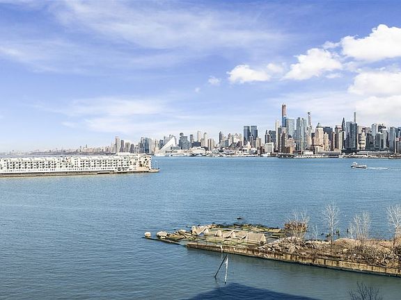 Impressive NYC skyline and river views from this stylish and fully renovated 2 bedroom 2 bathroom corner loft in the highly coveted Hudson Tea. Soaring 13' ceilings with exposed concrete beams and oversized windows accentuate the views and open living/dining floor plan. Striking custom chef's kitchen with stainless appliances and custom island. Master bedroom features floor to ceiling built-in closets. Gorgeous renovated spa-like bathrooms. Amenities include 24-hour concierge, spacious fitness center, resident's lounge, children's playroom, and private shuttle to the Path. 1 covered parking spot included.