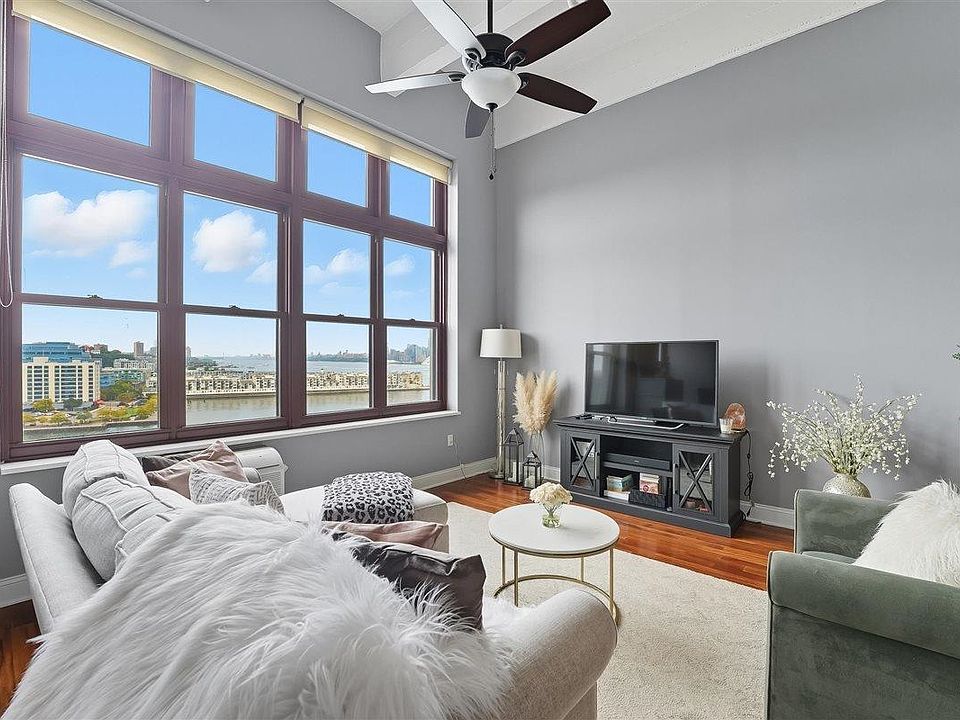 Enjoy this luxury living in this large studio loft in one of Hoboken's most desirable waterfront properties. This 735 sq.ft. Studio loft offers bright open living space with 14 foot ceilings, hardwood floors, stainless steel appliances and breath-taking waterfront views of upper Manhattan and the George Washington Bridge.