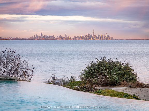 An Extraordinary Expression Of Waterfront Luxury, This Riparian-Right Lake Ontario Estate Is A Rare Architectural Masterpiece Nestled Within The Prestigious Enclave Of Rattray Park Estates. Set On Over Half An Acre Of Impeccably Curated Grounds, The Residence Offers More Than 10,000 Sqft Of Living Space, Where Water, Light & Design Converge To Create A Truly Immersive Lakeside Lifestyle. 5+1 Bdrms & 9 Baths Are Thoughtfully Positioned To Capture Breathtaking, Unobstructed Views Of Lake Ontario, The CN Tower & Toronto's Iconic Skyline. A Pvt Elevator Connects All Lvls, While A Car Lift Delivers Your Prized Car To An Automotive Gallery Below. Comfort & Convenience Are Elevated W/ Heated Driveway, Patios & Interior Flooring, Complemented By A 15,000-Lb Marine Railway For Access To The Water. A Dramatic 2-Storey Foyer Crowned By A Barrel Skylight & A Cascading 3-Lvl Indoor Water Feature Sets The Tone For The Home's Tranquil, Water-Inspired Design. The Main Lvl Unfolds W/ Rich Black Walnut Detailing & A Striking Dbl-Sided Freshwater Aquarium Separating The Living & Family Rooms. Designed For Refined Entertaining & Relaxed Family Living, The Space Flows Into A Chef's Kitchen Appointed W/ Granite Countertops, Sub-Zero, Wolf, & Miele Appls & W/O To Multiple Lake-View Terraces. A Formal Dining Room W/ Gas-Lit Chandelier F/P & B/I Speakers, Along W/ A Sophisticated Home Office Featuring Custom Maple Built-Ins & A Coffered Ceiling, Complete The Lvl. The Primary Suite Is A Pvt Retreat, Offering A Lakeside Terrace, Dual W/I Closets & A Spa-Inspired 5-Pc Ensuite W/ Steam Shower & Gas F/P. Each Addn'l Bdrm Enjoys Its Own Ensuite & W/I Closet. The Lower Lvl Rivals A Pvt Club, Featuring A James Bond-Inspired Lounge, Theatre, Fitness Studio, Temperature-Controlled Wine Cellar & A Full Spa W/ Steam Room & Sauna. Outdoors, A Resort-Calibre Setting Unfolds W/ An Infinity-Edge Saltwater Pool, Hot Tub, Outdoor Kitchen, Fire Pit & Multiple Seating Areas.