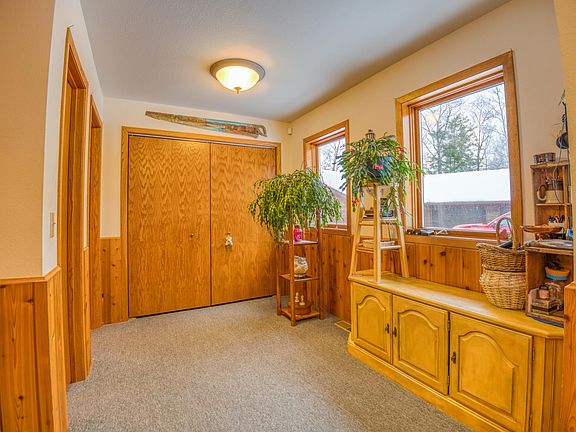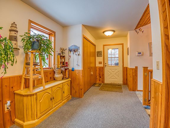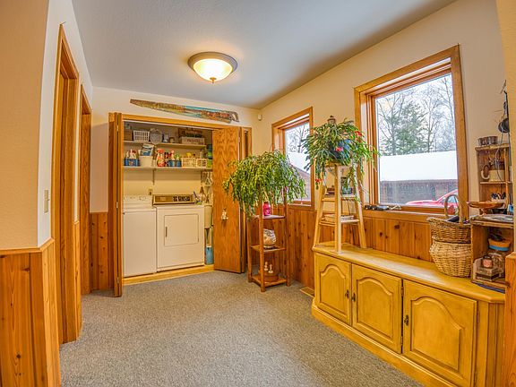 This beautiful three bedroom, two bath home has a tongue and groove vaulted ceiling, geothermal heat system, six stall garage and a paved driveway along with an extra lot that includes a 2+ stall garage with well and utilities.