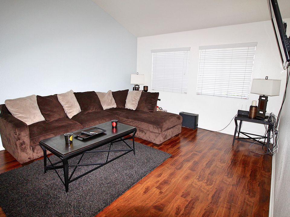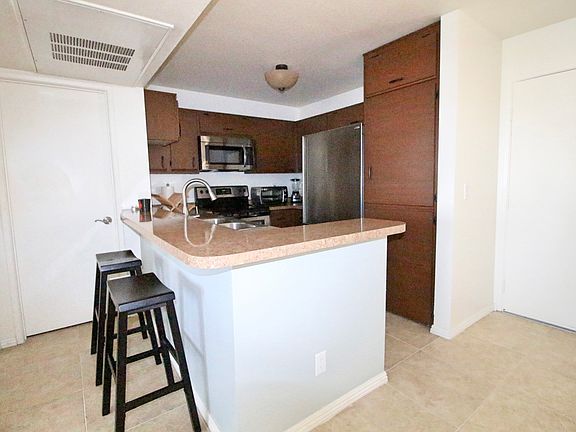 Welcome home to your beautiful ready to move in Condo. This newly renovated Condo is 1 bedroom and 1 bathroom . Home has newer Hardwood laminate flooring as well as Tile in the Dining/Kitchen/bathroom areas It has all the modern amenities such as a beautiful Kitchen and breakfast bar. Kitchen has newer modern style cabinetry with newer stainless steel appliances. This includes, stove, oven, microwave, refrigerator and dishwasher. There are washer and dryer hook ups and you also get the washer and dryer included! Bathroom has been completely updated with a large and beautiful Sink/Vanity, new lighting fixtures, tile as well as a Jetted Jacuzzi tub. Bedroom is spacious with large mirrored closet doors. This property features a large community pool and Jacuzzi with plenty of space to lounge and chairs to layout and enjoy the Summer. Another feature is there are BBQ Grills throughout the community available for your use. The community is gated and has 24 hour guard at the gate entry and subterranean parking. Close to shopping, transportation and entertainment.