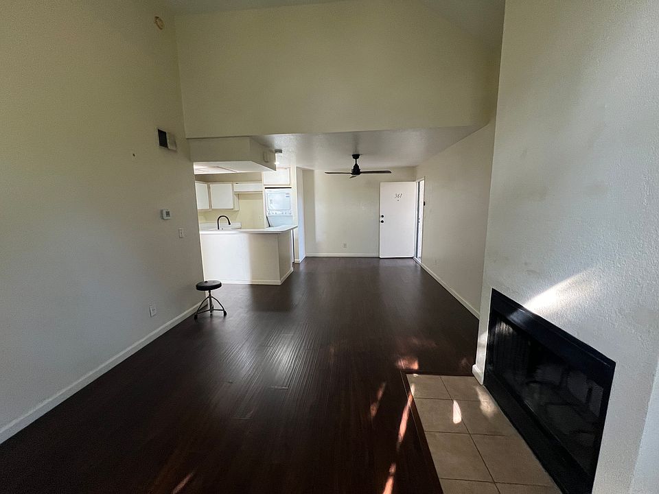 Beautiful upper level unit located in a gated community with great amenities such as swimming pool & clubhouse. The unit has dark wood floors and high ceilings as well as focal fireplace. The kitchen is open & is also equipped with a washer & dryer in unit. There is one parking spot in the underground garage. All utilities included in the rent except electricity.