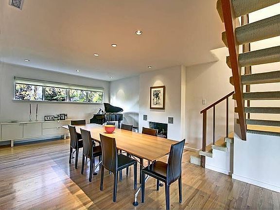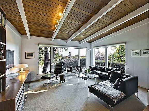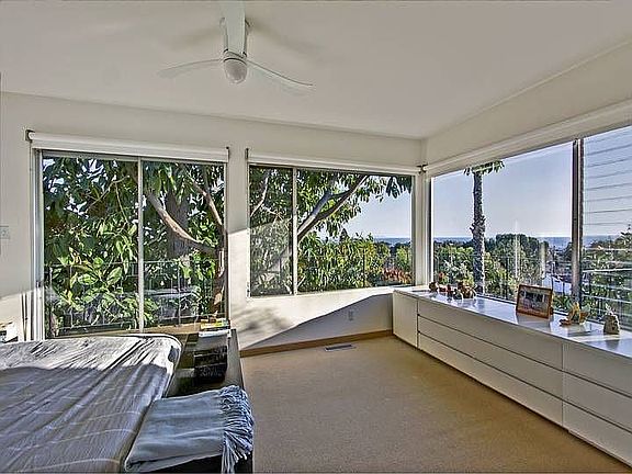 Streamlined mid-century in a prime village location w/ vws. of ocean and city lights thru verdant gardens. Elegant simplicity characterizes the experience of this home. Large scale picture windows open to vws. thru lush, tropical trees . The entertaining spaces are separate yet open to each other and their setting. Hdwd flrs, updated baths. and kitchen w/ eating area. The magnificent garden is highlighted by a travertine stairway & entertaining patio w/ fountain, lawn area and bball ct.
