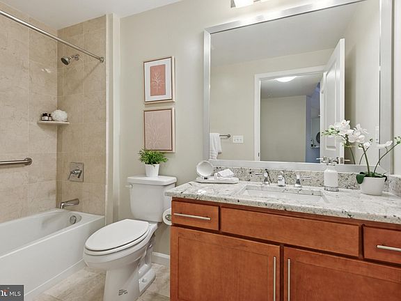 Rarely available condo in the newest building in Leisure World—Villa Cortese Building 5! This stunning 2-bedroom, 2-bathroom home offers one of the largest and most desirable floor plans with a bright, open layout and generous living spaces, perfect for both relaxing and entertaining. Enjoy beautiful wood laminate and ceramic tile flooring throughout the main living areas and bathrooms. The spacious, centrally located kitchen features ample counter space, modern cabinets, and a long kitchen bar that comfortably fits four stools—offering additional seating and extra space for accommodating guests or enjoying casual meals. The expansive living room easily accommodates even your longest couch, while the layout allows for effortless flow between the living, dining, and kitchen areas. The primary bedroom features two roomy closets and an en suite bathroom complete with both a walk-in shower and separate bathtub. The sunroom, accessible from the living room and both bedrooms, is a bright and cheerful retreat that offers additional space for lounging or morning coffee. No stackable washer and dryer here—you get full-size appliances, giving you the comfort and convenience of a traditional laundry setup. Located just a few steps from the elevator, this unit offers easy access while still maintaining privacy and peace. An assigned storage space is also provided. The building is kept impeccably clean and is known for its quiet atmosphere and low turnover—this is the first time this particular unit model is being sold as a resale, previously owned only by the original resident. This is one of the most walkable buildings in Leisure World, located just a short stroll to the grocery store and other amenities in the Leisure World shopping plaza. The building also features four electric vehicle chargers and affordable guest quarters that can be rented out when family or friends visit. For those commuting or planning day trips to Washington, D.C., the Glenmont Metro Station (Red Line) is conveniently located just over 3 miles away on Georgia Avenue. With ample public parking available, it's the easiest and most stress-free way to access the city. Leisure World of Maryland is a vibrant, 55+ gated community offering a wealth of amenities, including an 18-hole championship golf course, two clubhouses, indoor and outdoor swimming pools, a fitness center, walking trails, restaurants, a medical center, and a variety of clubs and activities. Enjoy a low-maintenance lifestyle with access to resort-style living every day.