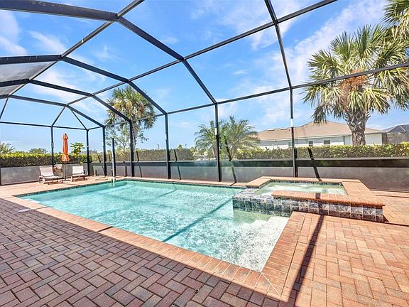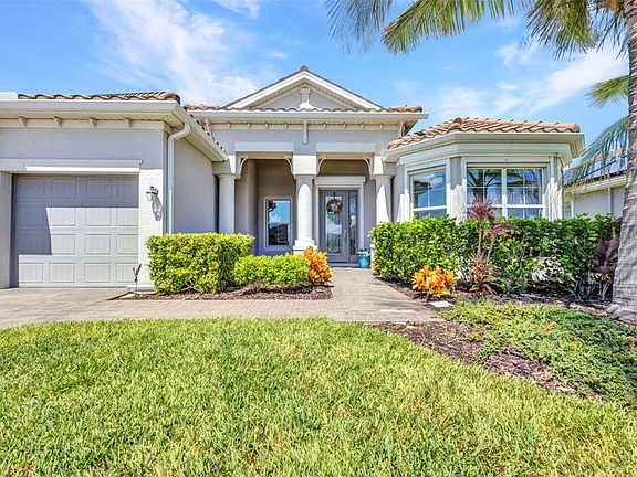 This is a STUNNING 5-Bedroom Pool Home with 3 full baths and a 3-car garage. The Sawgrass floorplan is one of the largest homes in the Harbor West Gated Waterfront Community. This exceptional 2990 sqft home blends elegance, comfort, and functionality in every detail. The entry has a beautiful leaded glass front door with a transom window above allowing extra light to flow in. The entire home has 21" square tiles which contribute to the spaciousness and continuity of the floorplan. Boasting 5 bedrooms and 3 baths, the Sawgrass offers the perfect balance of private retreats and open living spaces. The 3-car garage provides ample storage for vehicles, tools, and recreational gear. The heart of the home is the large bright kitchen with generous granite counter tops, premium wood shaker cabinets topped with crown molding, modern appliances including a convection oven and microwave, tiled accent backsplash, and a convenient breakfast bar--Or you can dine and linger in the breakfast nook which has an aquarium window overlooking the pool! Two of the 5 bedrooms can be used as a mother-in-law suite. There is a door which connects the 2 rooms affording one room as a bedroom and the other as a sitting room. There are 2 full baths outside of the "mother-in-law suite"-one with a tub & shower and the other with just a shower. The Primary bedroom is gorgeous with high tray ceilings, crown molding and lots of windows. There is a separate sitting area by the windows which overlook the pool. Just before the en suite bathroom are a big walk-in closet and regular built-in closet. The bathroom offers a garden soaking tub, private water closet, separate shower stall and a vanity with 2 sinks--a true oasis for relaxing! The laundry room off the garage has full size washer/dryer, utility sink, and cupboards. The 60' x 22' screened lanai is the gem of the property. The sparkling heated salt water pool/spa is the center of attention with ample surrounding space for entertaining. For convenience, the owner installed an outdoor shower. The area is surrounded by lush landscaping--perfect for tranquil afternoons or lively gatherings. There is a wrought iron fence beyond the lanai, and the green space beyond the lanai will never be built upon. Whether enjoying your morning coffee or hosting friends for a summer barbecue, this home is designed to make every day like a getaway. No need to worry about inclement weather as the home has Storm Catcher Slide Screens by Storm Smart and a Kevlar screen across the lanai to protect the windows and doors. Harbor West is close to the charming Boca Grande town, beaches, and waterway. 40 minutes north is the popular Wellen Park and Atlanta Braves Spring Training Stadium and to the south is the Tampa Bay Rays Spring Training Stadium. There is so much to see and do in the surrounding area so make your appointment today!