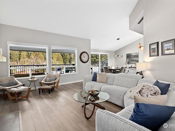 Unobstructed 13th fairway golf course views from this stylishly updated home in coveted Fairway Village II with gated-entrance! Watch wildlife, golfers and gaze at Cherry Blossoms from the extended heated deck! The main level boasts living room w/cozy gas fireplace, dining area, spacious kitchen, primary suite w/large walk-in closet & ¾ bathroom w/double vanity, utility closet, 2nd bedroom, full bath & enclosed sunroom. The lower level has a family room w/wet bar & fireplace, 3rd bedroom, ¾ bathroom & HUGE storage room. Other features include vaulted ceilings, heat pump (A/C), tankless water heater & beautiful landscaping. Ideally located near Mill Creek Town Center w/excellent shopping/dining, trails, parks, Paine Field, Park & Ride & I-5!