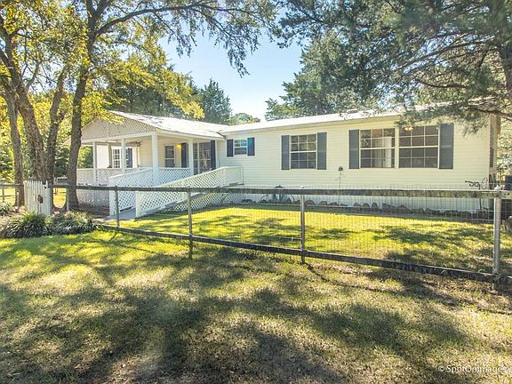 Peaceful and unbelievable 4 acre gated and fenced property with a winding drive covered by thick, lovely trees. Drive leads up to an updated double-wide home featured with a serene, massive covered porch in the front and a large deck in the back. The interior of the home has a light and open atmosphere, with a bonus of an enclosed study within the master bedroom. Corner FP enhances large living area. There is a work-shed along the driveway surrounded by trees, and an extra storage shed in the back of the property. Move-in ready with no Seller Disclosure required. Buyer must purchase new survey. If this property sounds too good to be true, come see it to believe it!