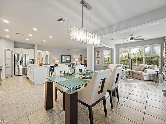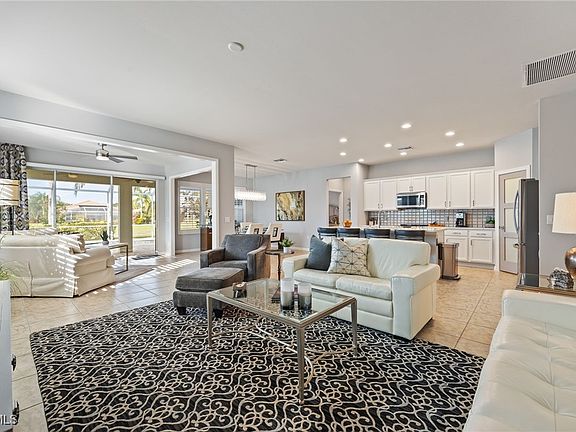 Immaculate and move-in ready, this beautifully updated 2-bedroom plus den, 2-bath home in VillageWalk of Bonita Springs offers comfort and exceptional attention to detail throughout. The thoughtfully designed floor plan features an updated kitchen with quartz countertops, new stainless-steel appliances, and stylish lighting with dimmer controls. Freshly painted inside and out, this residence also includes a new AC unit, updated landscaping, and a remodeled primary bath. The spacious laundry room provides a sink, ample cabinetry, and a convenient folding area. A double-deep garage offers abundant space for extra storage or golf cart parking. Step outside to enjoy the heated pool and private outdoor area—perfect for relaxing or entertaining. This home has been meticulously maintained, with all receipts for improvements and furnishings on file. It is being sold turnkey, complete with high-end décor, custom rugs, Haverty’s furniture, quality linens, premium cookware, small appliances, and artwork—ready for you to move in and start enjoying immediately. VillageWalk of Bonita Springs is a vibrant, amenity-rich community featuring a grand clubhouse with gathering rooms, library, and ballrooms; heated resort and lap pools; poolside food and beverage service; a full-service restaurant and sports bar; bagel and sandwich shop, and ice cream shop. Additional conveniences include a spa, hair salon, U.S. Post Office, Shell fuel station, and touchless car wash. Residents also enjoy tennis, bocce, and basketball courts, a children’s playground, a state-of-the-art fitness center, and manicured grounds with a gazebo overlooking the lake. A full-time Activities Director coordinates a robust calendar of social events, clubs, and activities. HOA fees are low and cover fiber-optic high-speed internet and HD television, all amenities, complete lawn and landscape care, irrigation water and equipment, and the 24/7 staffed gatehouse. The community’s 21 miles of scenic walking paths complete the resort-style living experience.