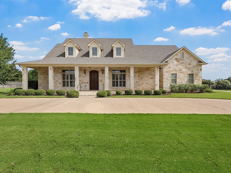Charming Austin Stone One-Story in Beautiful Badger Ranch! Nestled on a spacious 0.8-acre lot in the desirable Badger Ranch Subdivision, this stunning Austin stone home offers exceptional curb appeal with a circular driveway and mature landscaping. The property features a 2-car side-entry garage plus an additional detached single garage—perfect for extra storage or a workshop. Inside, the open-concept layout is designed for comfort and style, with rich wood floors throughout and plantation shutters on every window. The gourmet kitchen boasts a gas cooktop and flows seamlessly into the family room, which features a stone fireplace, custom built-ins, and a wall of windows with French doors leading to a spacious back porch—ideal for entertaining or relaxing. A second living area serves as a versatile home office or additional sitting room, complete with its own half bath and more built-ins. The home is equipped with two gas tankless water heaters for energy efficiency and convenience. The isolated primary suite offers privacy and comfort, while two additional bedrooms accommodate family or guests. A formal dining room adds an elegant touch for hosting gatherings. Recent upgrades include a new roof (2022) and a 5-ton Trane CHA system (2022) with warranty for peace of mind. Enjoy community amenities with a $115 monthly HOA that includes access to a beautiful neighborhood pool.