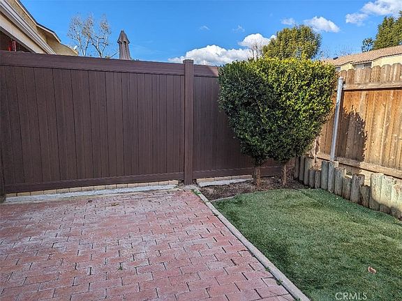 Patio has been improved with brick paving and grass and new wood fence. Tilt up garage door. Gate at fence allows access to Kitchen thru sliding doors