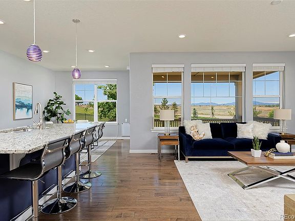 Every convenience thought of, every elegance well executed. This gorgeously appointed home looks and feels like a single-family property yet enjoys the price and hassle-free lifestyle of a paired home. With mountain views and sunsets right out your own windows and from your covered back deck, you’ll love the resort-like life here at Heritage Todd Creek. The community amenities include an 18-hole championship golf course, a clubhouse, a fitness center, two pools, a hot tub and tennis courts at your disposal—plus your association fees cover grounds maintenance and snow and trash removal. Among the many highlights inside this home is the kitchen, with 42-inch cabinets, a double oven, granite countertops, a gas range and a stunning island that’s perfect for gathering around. Wood floors and tall windows make your living spaces open and bright, and a gas fireplace in the living room will be the site of cozy evenings curled up with a book or sharing stories. Your primary suite is relaxation central, with soothing colors, a tray ceiling, a gorgeous 5-piece bath, and a walk-in closet with access to the laundry room. All your options are expanded below in the unfinished basement, which has 9-foot ceilings, and an oversized attached garage provides lots of storage. Enjoy proximity to the best of metro Denver and several nature areas like Smith Reservoir (in your own neighborhood), Barr Lake State Park and open space trail networks nearby.